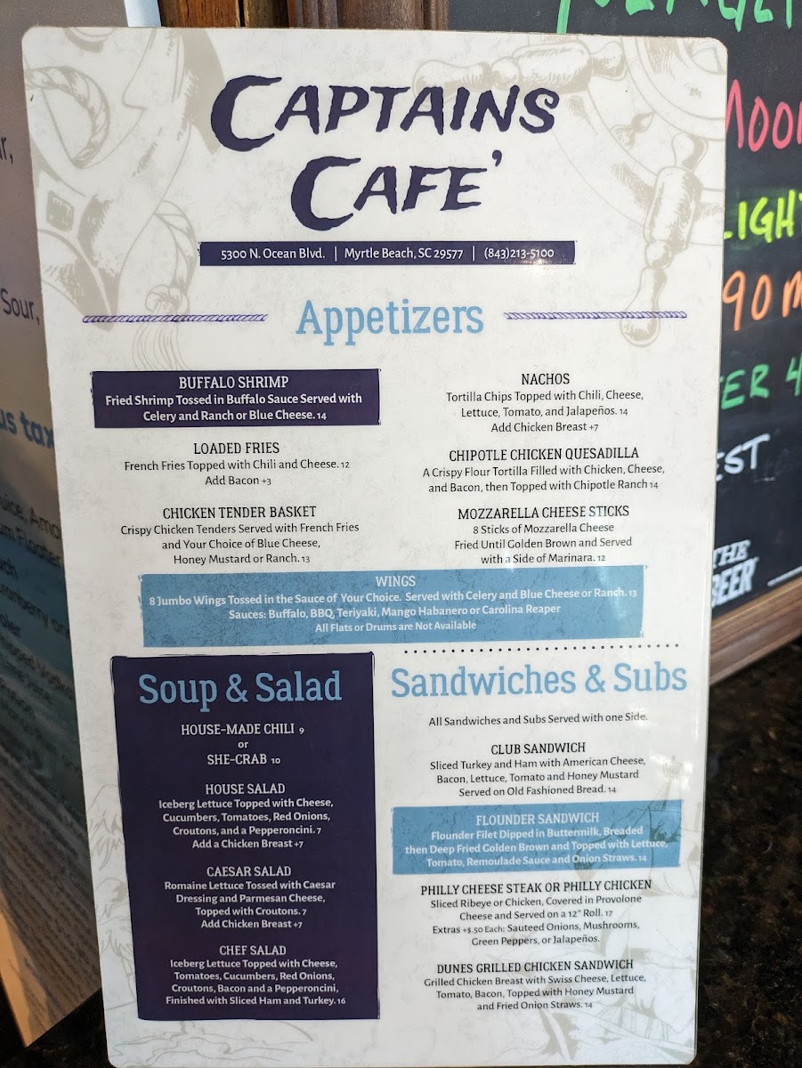Captain's Cafe Menu